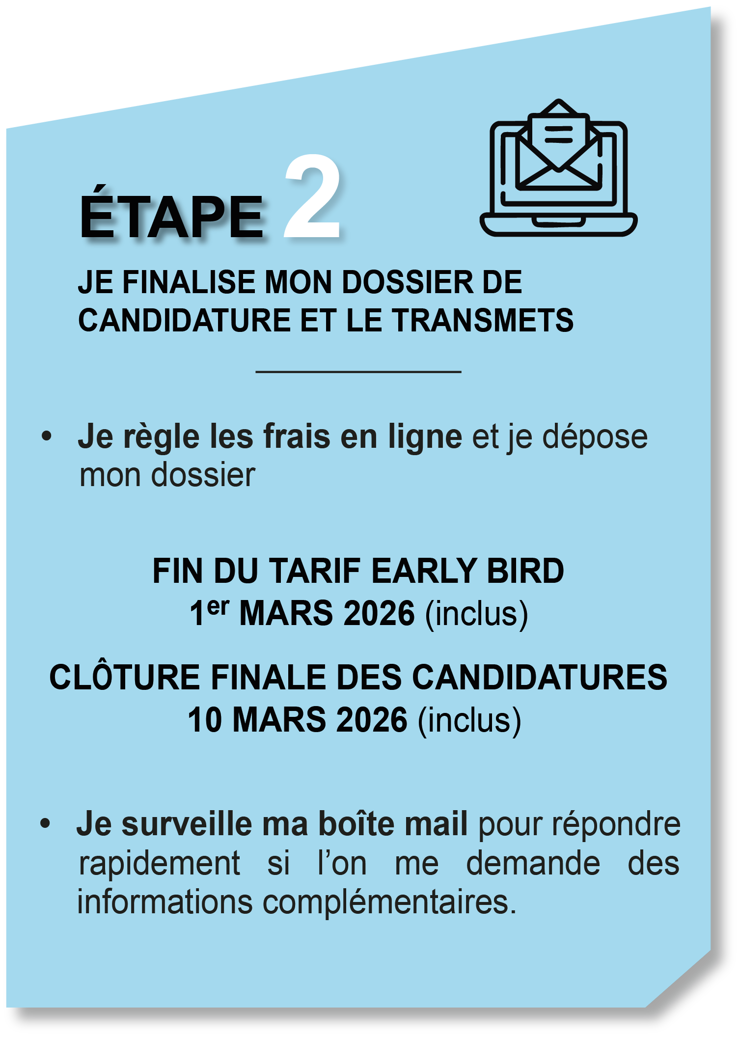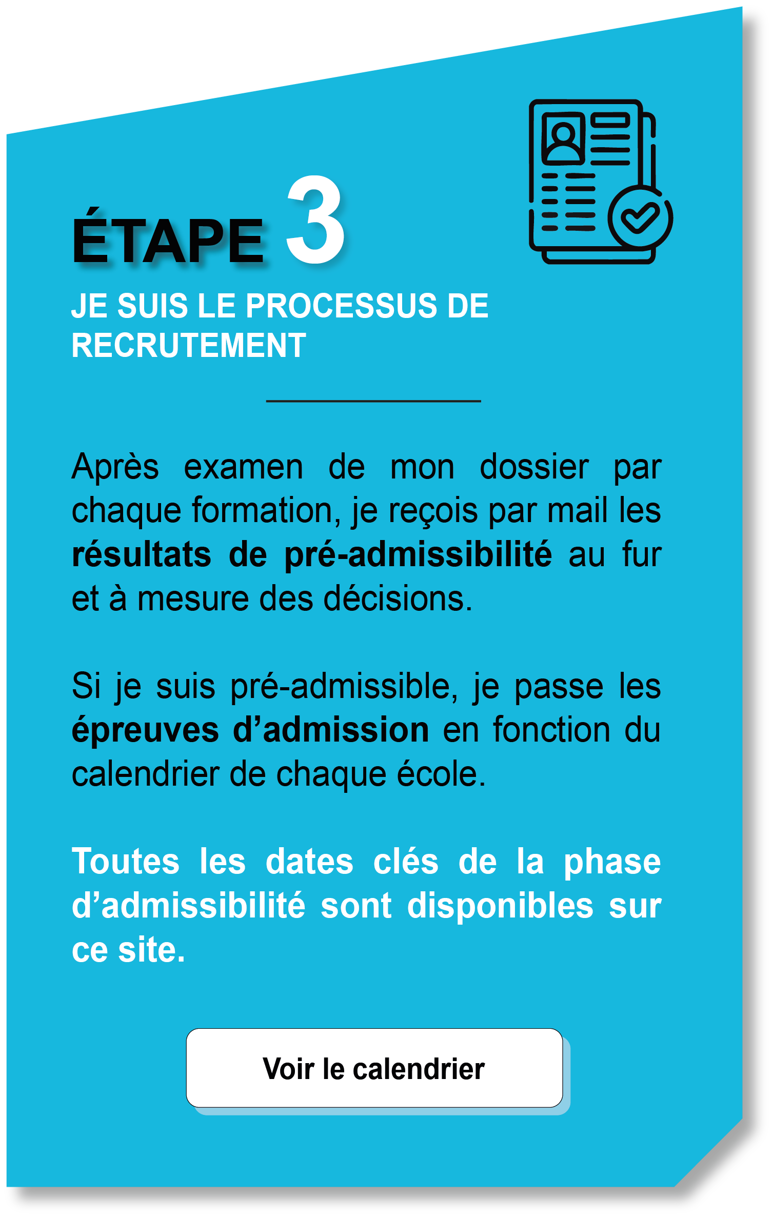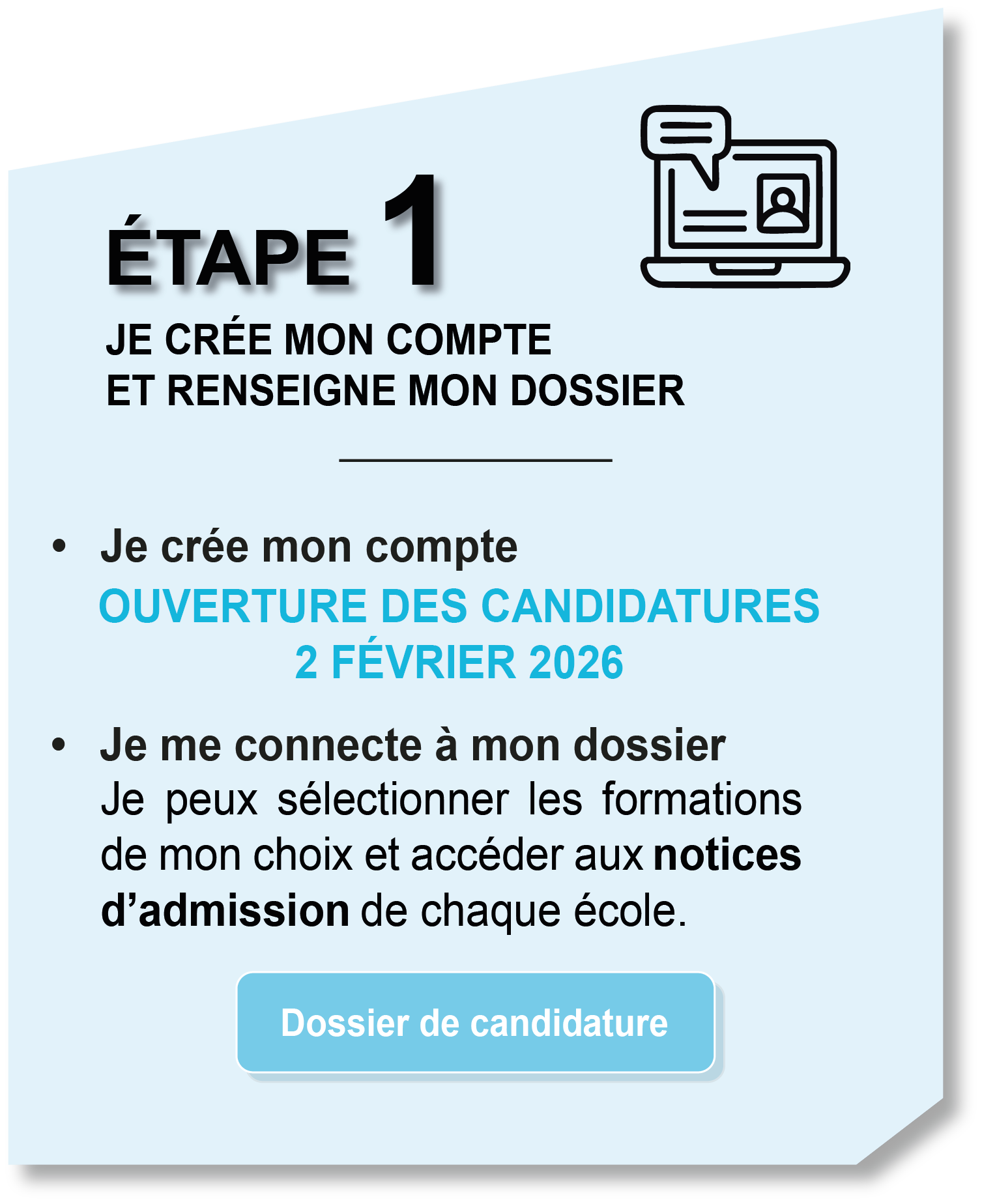 Il est possible de candidater à chacune de ces écoles, directement en ligne, en complétant un dossier de candidature unique qui vous permet de sélectionner un ou plusieurs choix de formation.