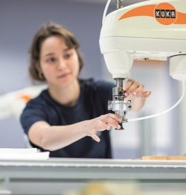 « Nous formons nos ingénieurs apprentis aux outils à la fois actuels et émergents dans un contexte d’évolution de la conception des produits et ils participent au transfert de technologies dans les entreprises, confirme Arnaud Delamézière, directeur de l’Institut supérieur de l’Ingénierie de la Conception (Mines Nancy campus InSIC) qui propose une formation d’ingénieur par apprentissage, spécialité Génie mécanique. Cette formation en conception de produits mécaniques, aux méthodes et aux outils de la créativité et de l’innovation, notamment aux outils du numérique, intéresse beaucoup les entreprises puisque grâce à l’alternance, nous leur apportons tous ces outils. » « Nos apprentis ingénieurs interviennent dans tous les services de l’entreprise, ajoute Laetitia Cambon, responsable de la formation d’ingénieur par apprentissage Mécatronique (MKX) à IMT Mines Alès. La mécatronique, une vraie spécialité, c’est la synergie de quatre domaines technologiques : mécanique, électronique, informatique et automatique qui permet de travailler sur des systèmes complexes quel que soit le secteur d’activité de l’entreprise. Elle intervient dans la R&D, la conception en bureau d’étude, les méthodes, la mise en production, les essais et la maintenance jusqu’à la validation finale. Par exemple, nos élèves font de la robotique, un sous-domaine de la mécatronique, car il y a désormais beaucoup de robots sur les chaînes de production des entreprises. Nous ne cherchons pas à les rendre experts dans chaque domaine de la mécatronique mais à leur donner les clés de compréhension et de dialogue et de les doter d’un bagage suffisant pour appréhender un système complexe dans sa globalité. »